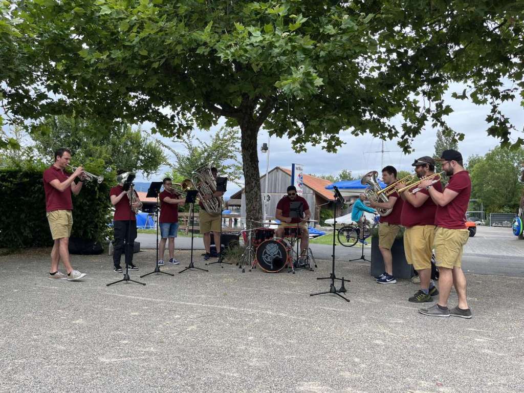 Am Wochenenden war die Seeländer Band «Bien Brass» in drei Dörfern am Bielersee Unterwegs und hat mit mehreren Bläsern und einem Schlagzeuger für Unterhaltung am Seeufer gesorgt.